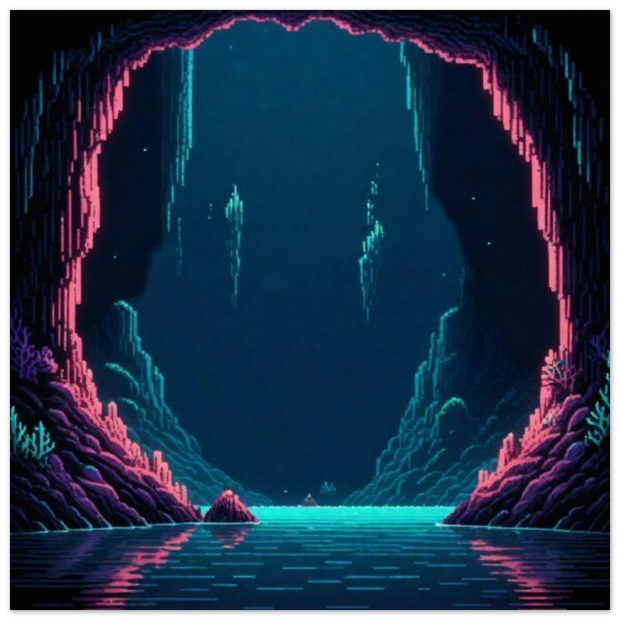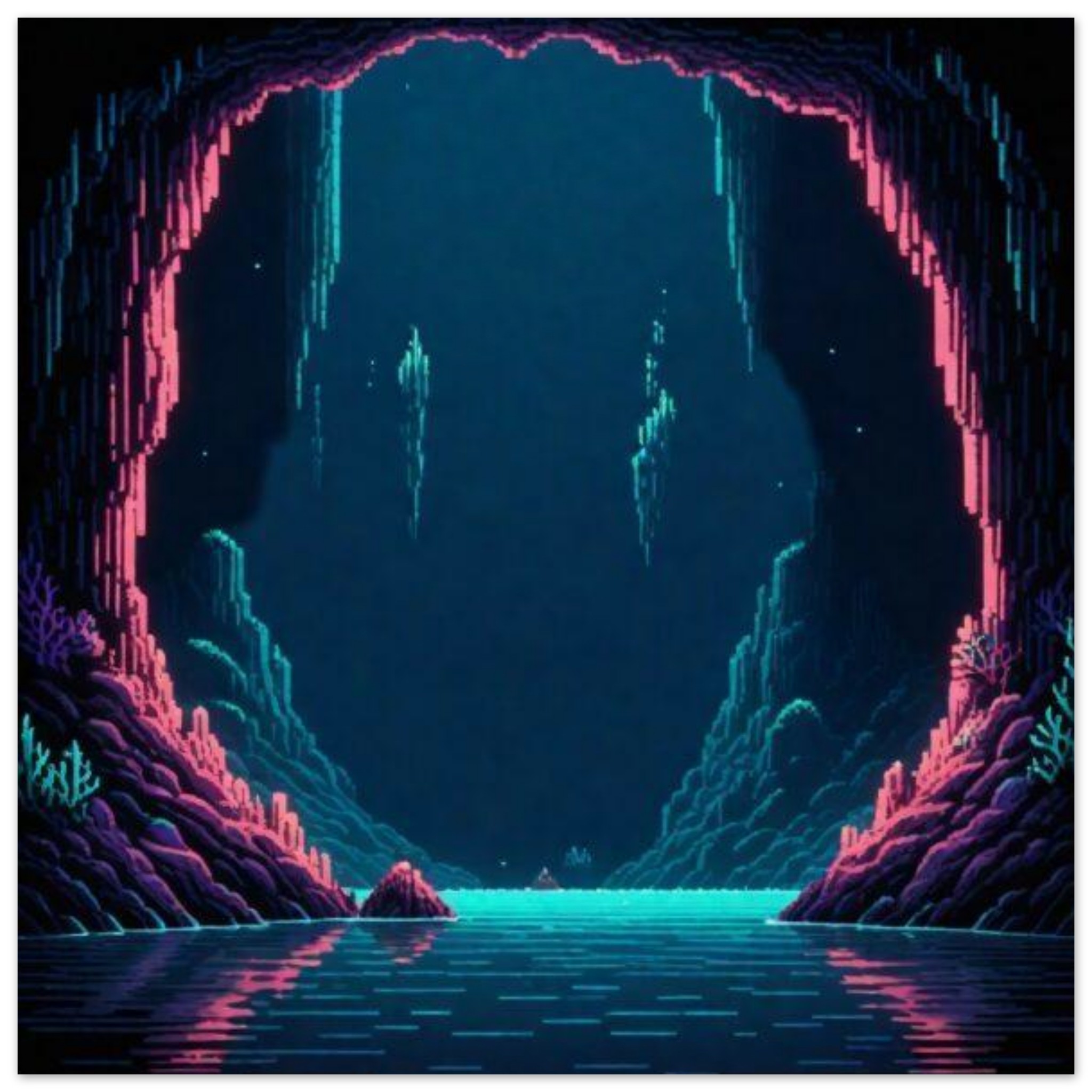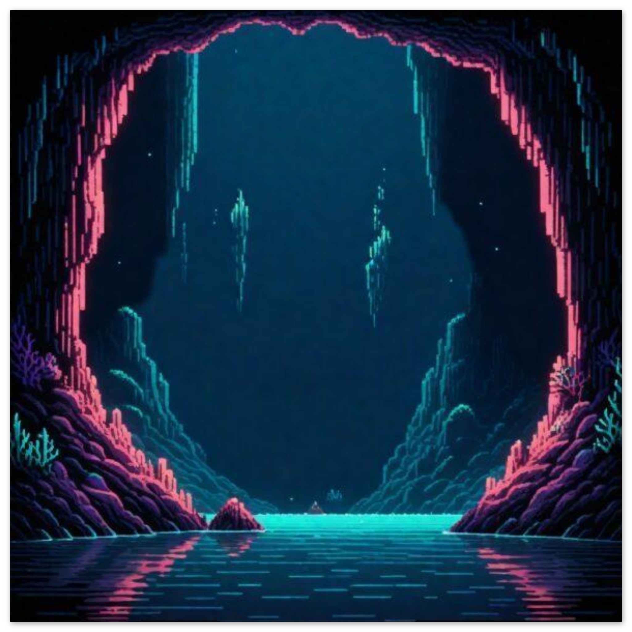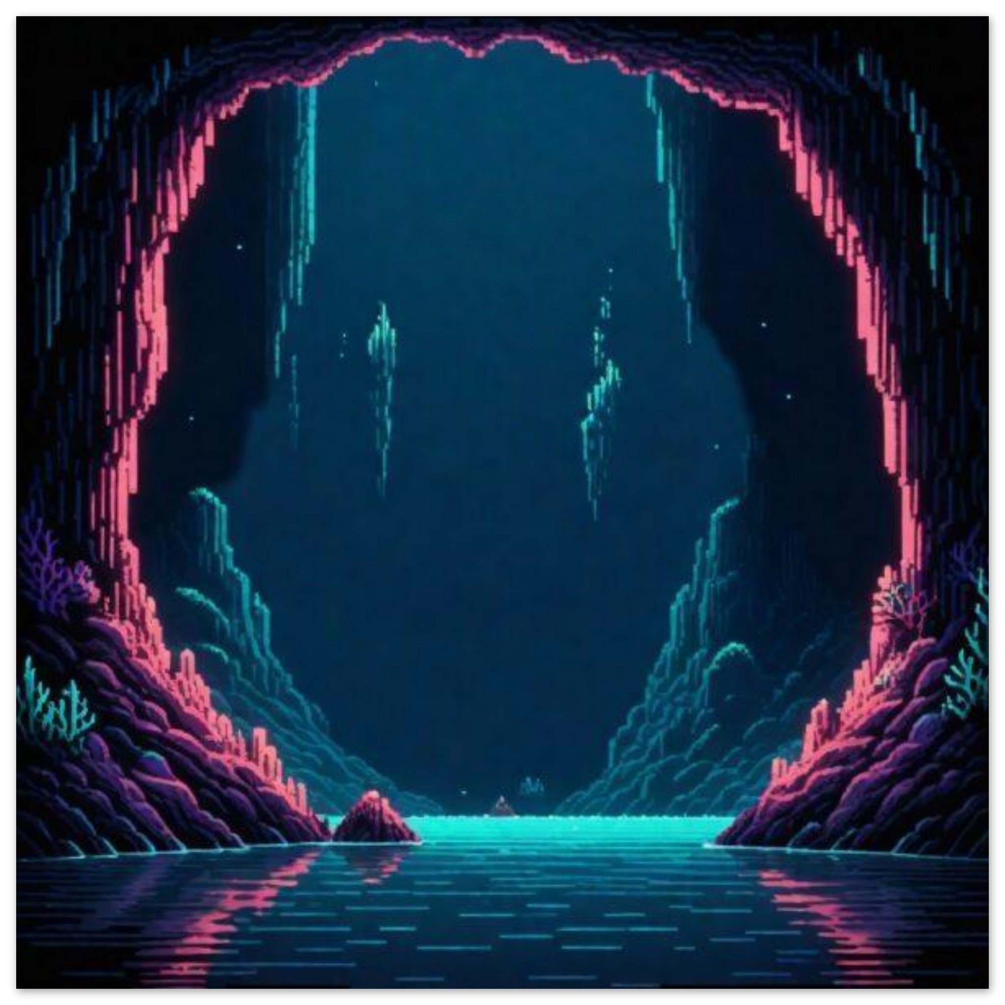 A dark cave with a hole in the middle is surrounded by a body of water, creating a mysterious and intriguing scene. The cave is shrouded in darkness, with the only light coming from the water reflecting off the walls. The water is a deep blue and green, adding to the eerie atmosphere of the cave. In the background, another cave can be seen, further adding to the sense of mystery. The overall image is captivating and evokes a sense of exploration and adventure in the midst of nature’s beauty.