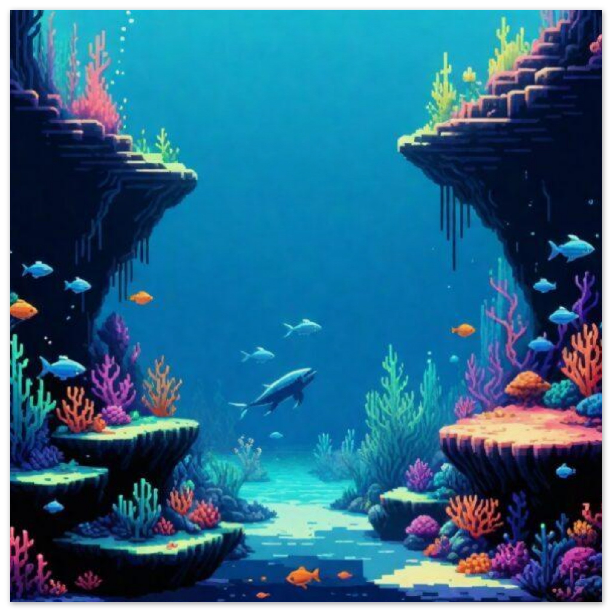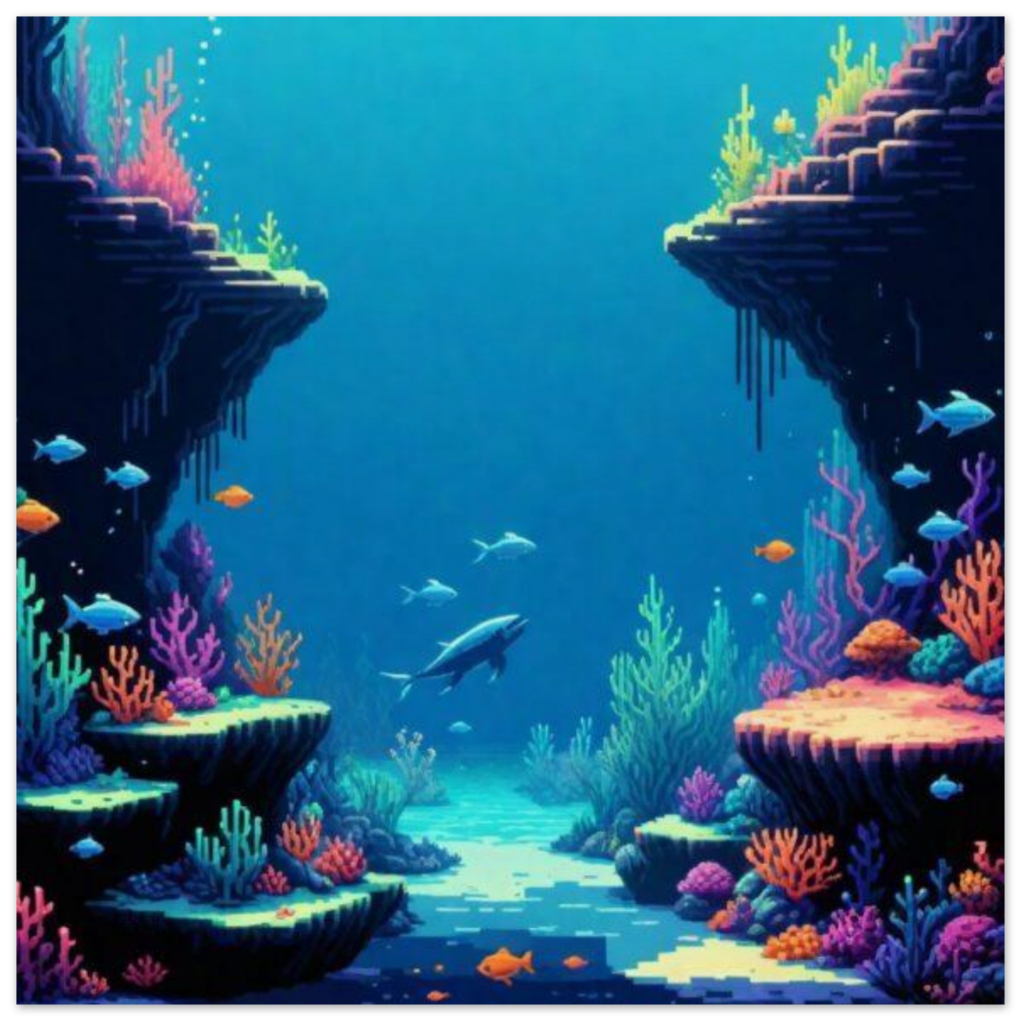 A stunning video game art depicting a vibrant coral reef teeming with colorful fish and intricate corals. The scene is set underwater, with the fish gracefully swimming among the corals, creating a mesmerizing and immersive experience. The dominant colors of blue and black create a serene and mysterious atmosphere, while the accent color of 0D87BB adds a pop of brightness. This artwork showcases the beauty of marine biology and the wonders of the underwater world, making it a perfect addition to any aquarium or nature-themed setting.